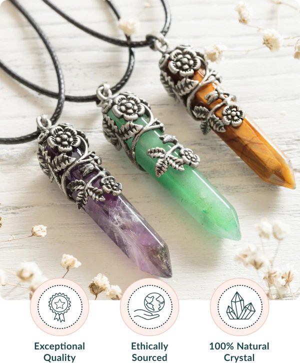 Driveaway negative energy with the right crystal for you! These crystal necklaces feature different types of crystals that have unique individual energy fields that can help you with specific development of the mind, body, and spirit.