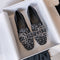 Belifi Square Toe Rhinestone Flat Bow Shoes